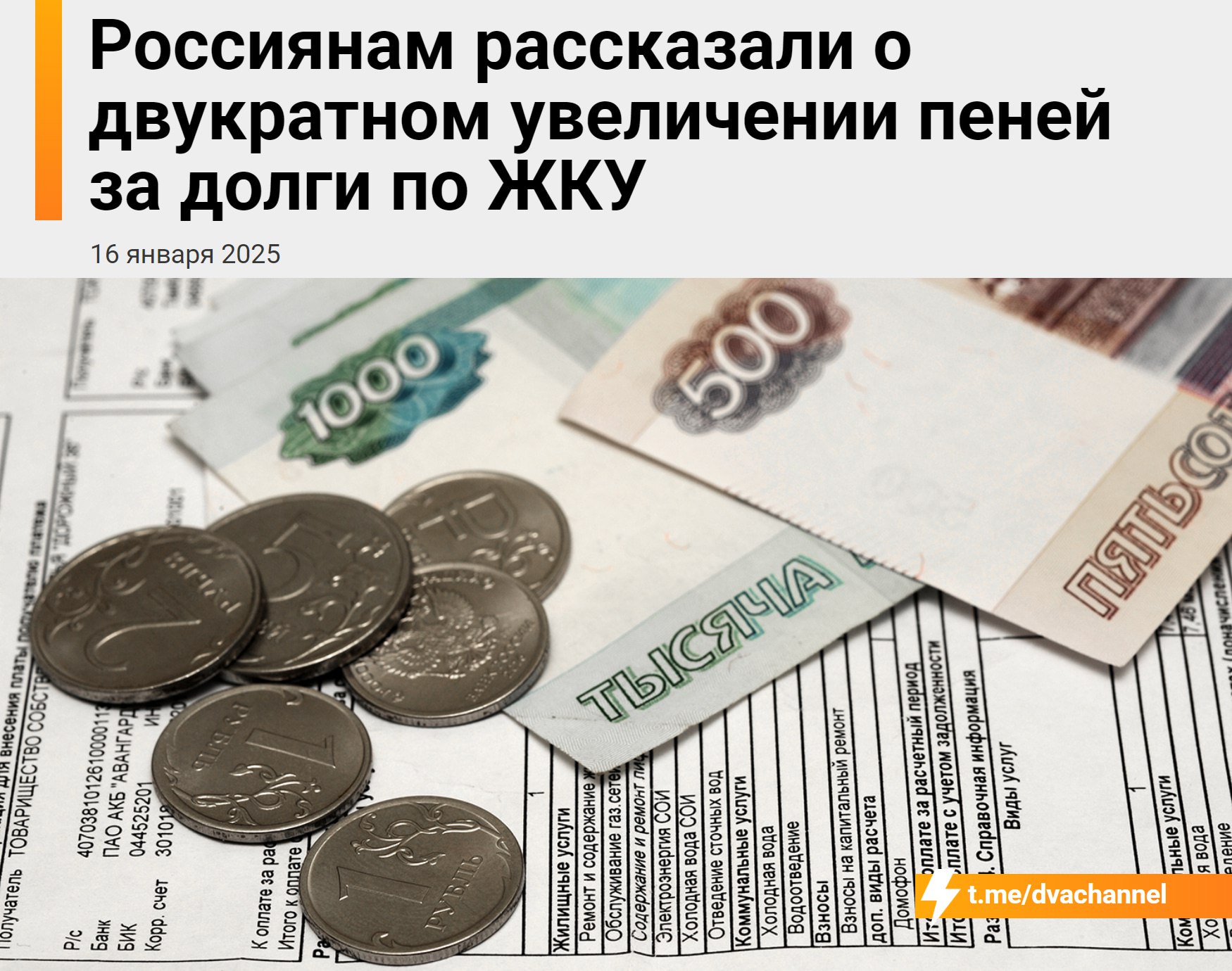 Штрафы за задолженности по коммунальным услугам выросли в два раза — в январе прекратил действие закон, устанавливавший льготную ставку не более 9,5%Теперь начисление пени производится по текущей ключевой ставке ЦБ, равной