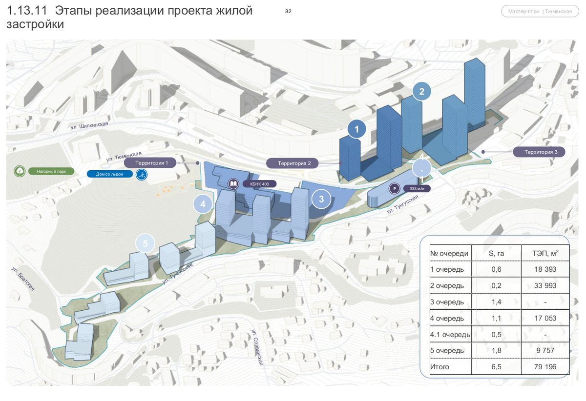 Территория расположена в зоне Ж-2, Ж-4, Т-4 и Р-1. Раньше её хотели «перегнать» в общественно-жилую застройку (ОЖ-1), теперь она станет единой зоной Ж-4 (многоэтажные многоквартирные жилые дома). Особенностью территории является перепад рельефа от 6 до 35%.