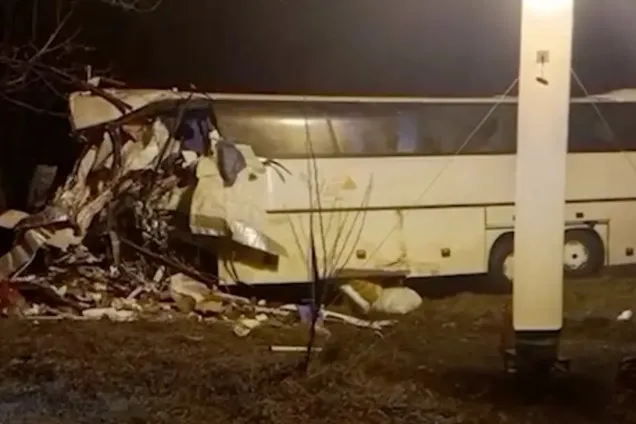 Пять человек погибли при столкновении автобуса и грузовика под Краснодаром. Видео © t.me / 23 МВД