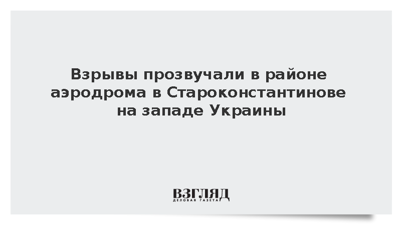 Взрывы слышны в районе Староконстантинова в Хмельницкой области на западе Украины, где расположен военный аэродром, передает Страна.ua. Сообщение о взрывах появилось в Telegram-канале украинского издания.
