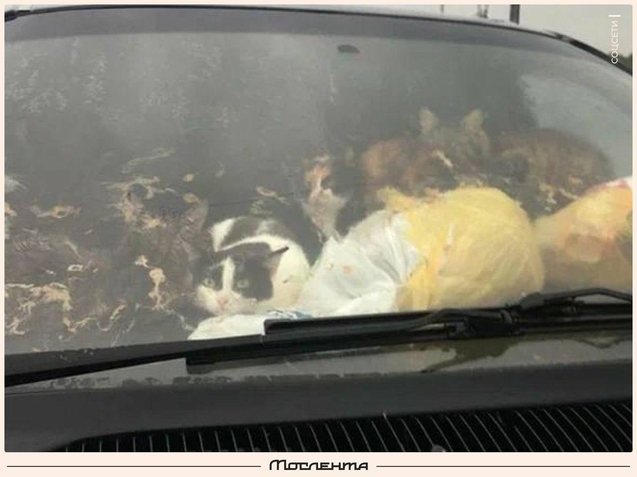 Москвичка спасла 18 голодных кошек, запертых в машине.