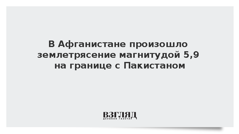 Землетрясение магнитудой 5,9 произошло на территории Афганистана вблизи границы с Пакистаном, сообщили в Европейско-средиземноморском сейсмологическом центре.
