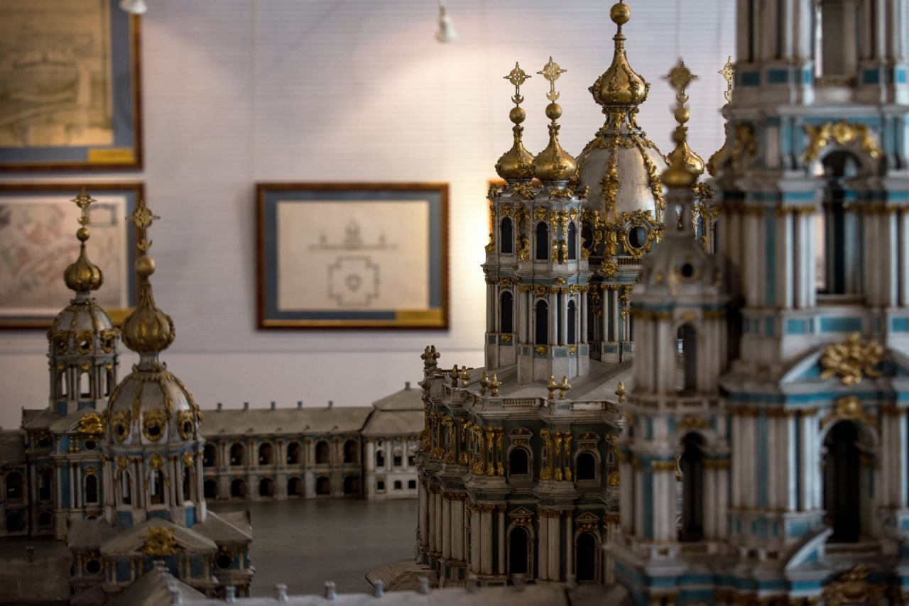 В Музее хранится макет ансамбля Смольного монастыря, согласно которому Растрелли планировал возвести 167-метровую пятиярусную колокольню.