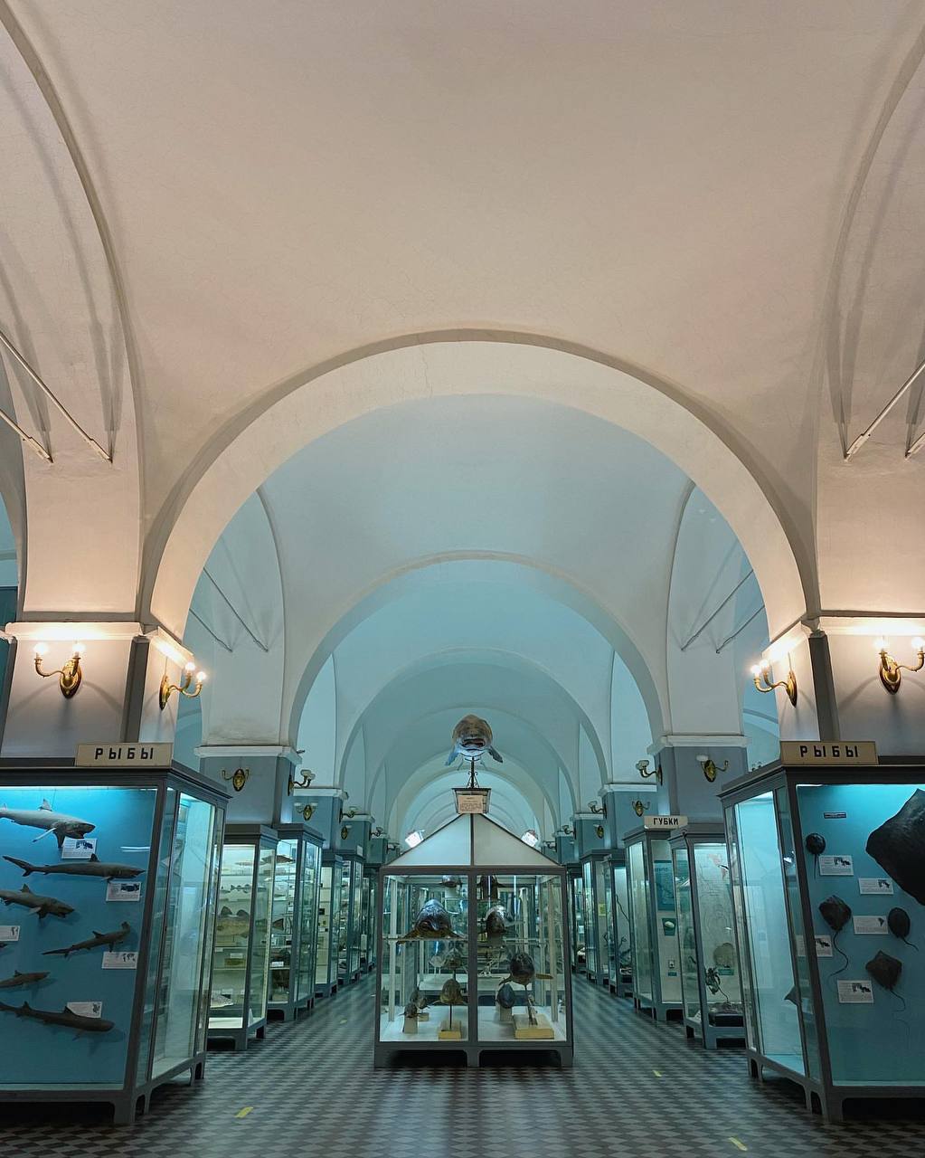 Зоологический музейИзначально часть экспозиции была взята из Кунсткамеры: экспонатов было мало, в первое время еле набрали три зала.