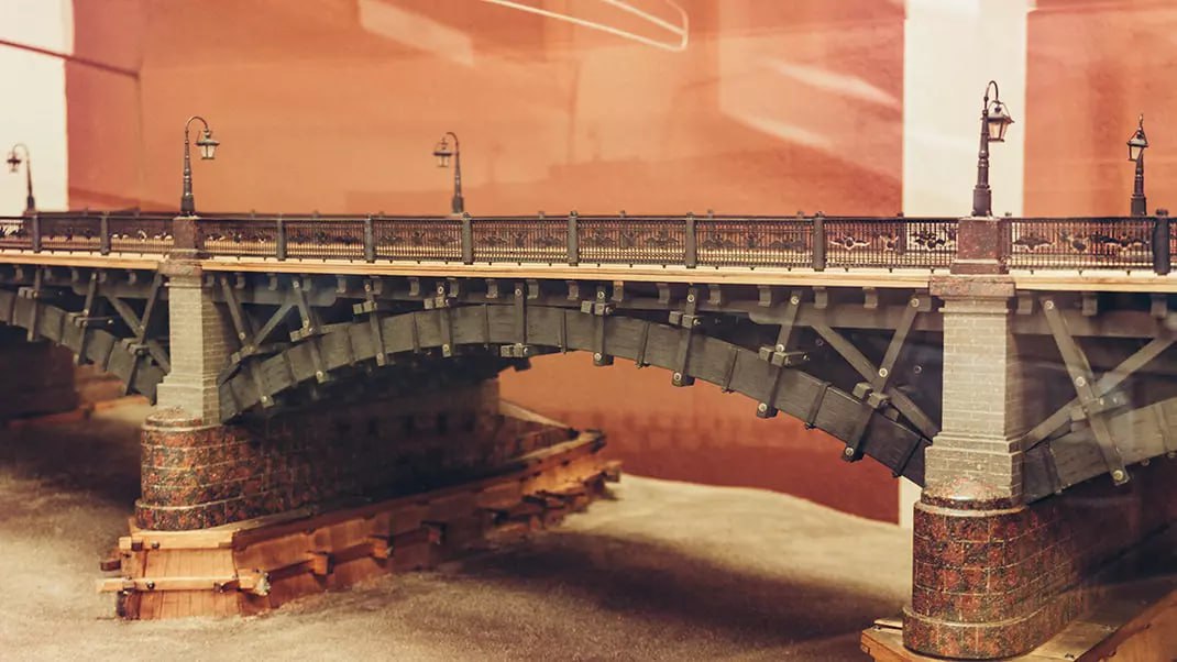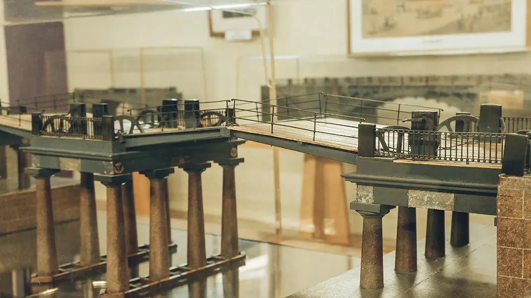 Например, разводная модель Благовещенского моста, который дошел до наших дней, правда, уже в перестроенном виде.