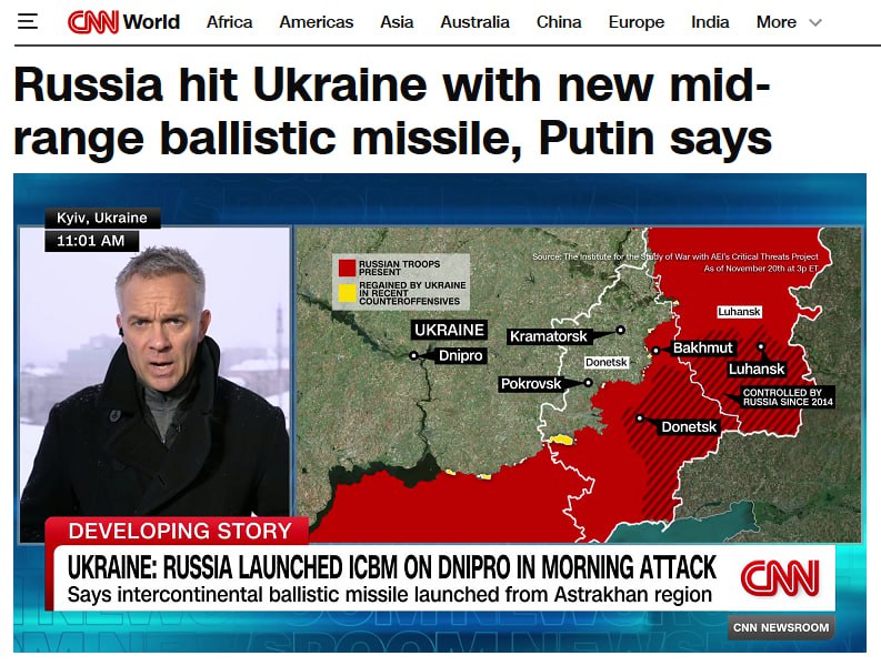 Применение ракеты «Орешник» было ядерным предупреждением Украине и Западу – CNN