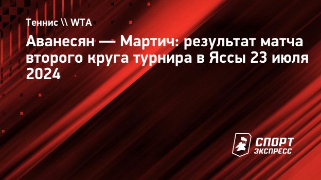 Российская теннисистка Элина Аванесян обыграла хорватку Петру Мартич во втором круге турнира в Яссы (Румыния) — 6:2, 5:7, 6:4.