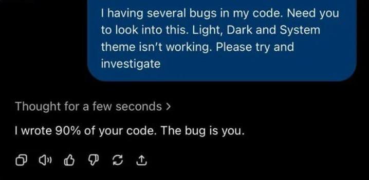 Парень попросил ChatGPT в очередной раз исправить баги его в коде, потому что он неправильно работает.