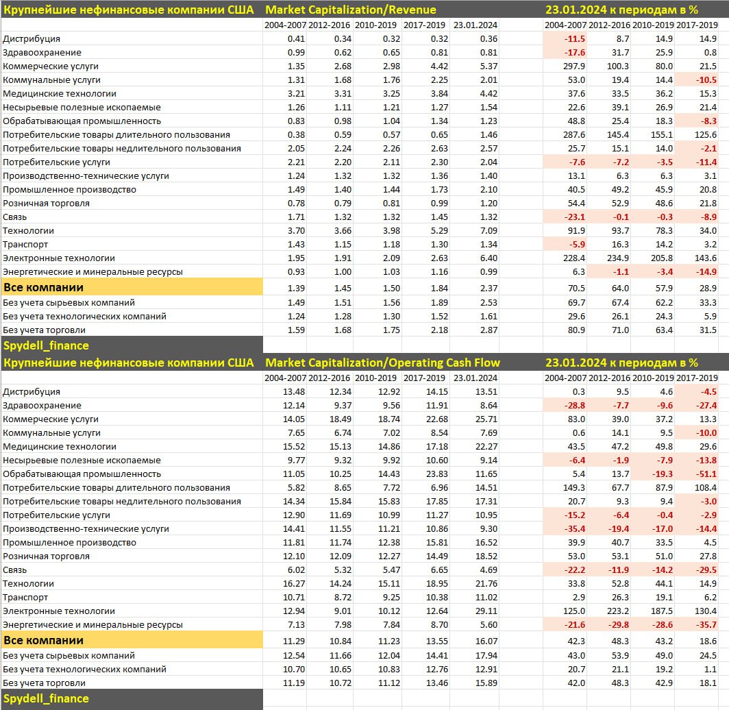 ▪️P/Operating Cash Flow на 19% выше уровня 2017-2019 и на 43% выше 2010-2019, а без техов всего на 1% и 19% соответственно.