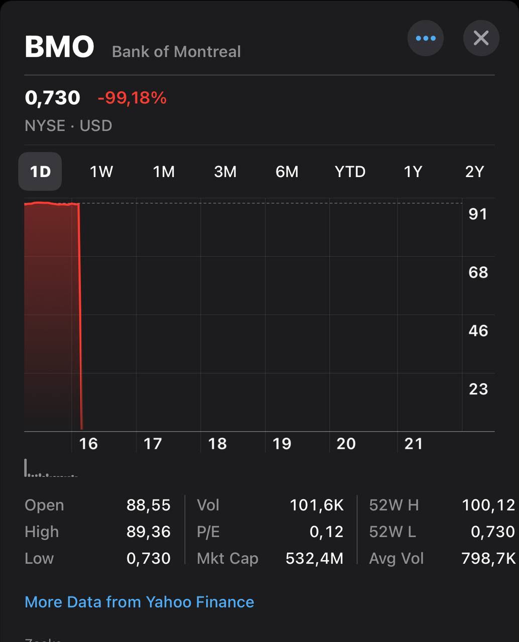 💤Berkshire Hathaway и Bank of Montreal Уоррена Баффета упали на фондовом рынке на 99%, всего через час после открытия рынка