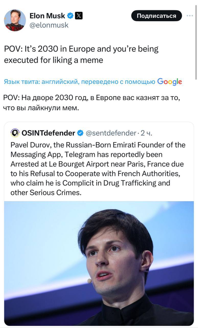 Илон Маск отреагировал на арест Павла Дурова