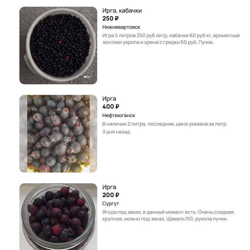 Многие продавцы принимают заказы онлайн на сбор и доставку ягоды ирги. На сайтах бесплатных объявлений в Сургуте за литр ирги просят 200 рублей. Столько же — в Нягани, Советском и Лянторе.