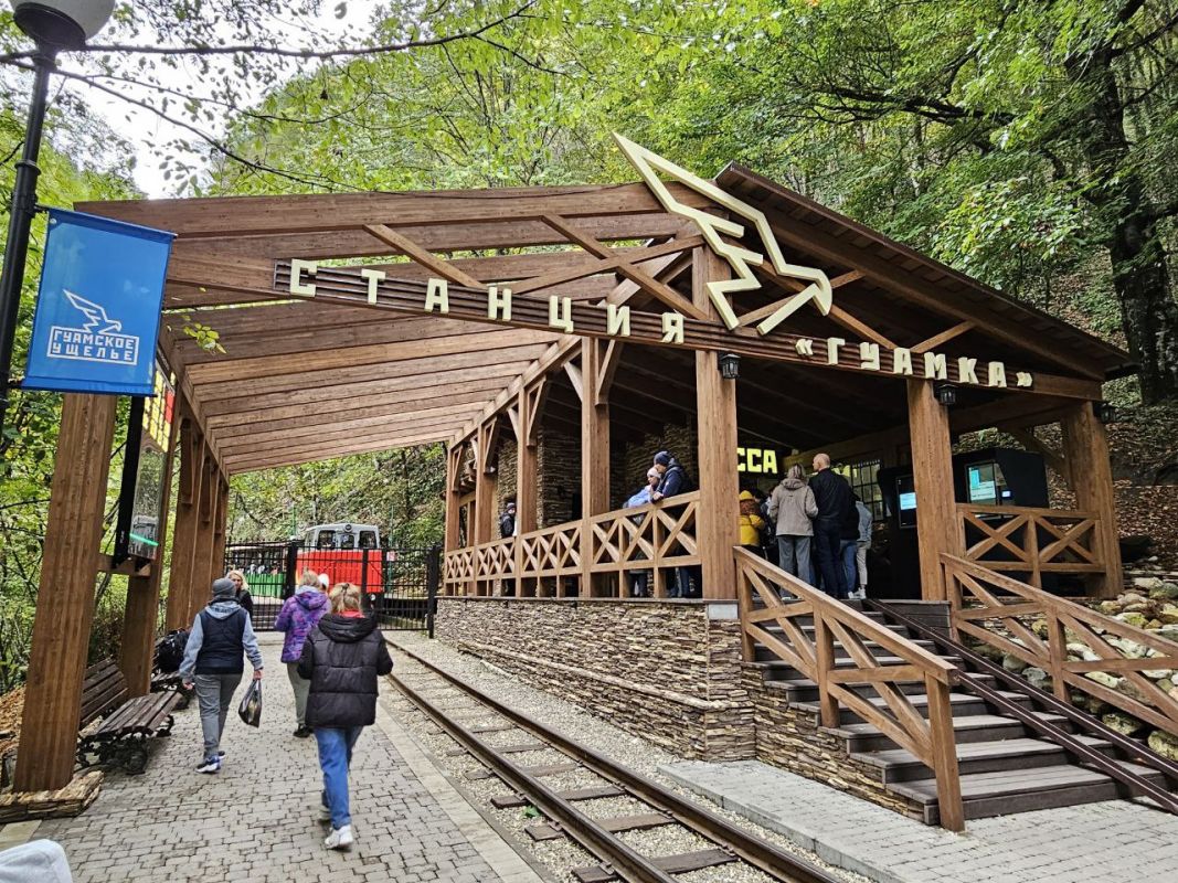 Для тех, кто предпочитает более спокойный отдых, подойдёт поездка на тепловозе по горной узкоколейной дороге в Гуамском ущелье.