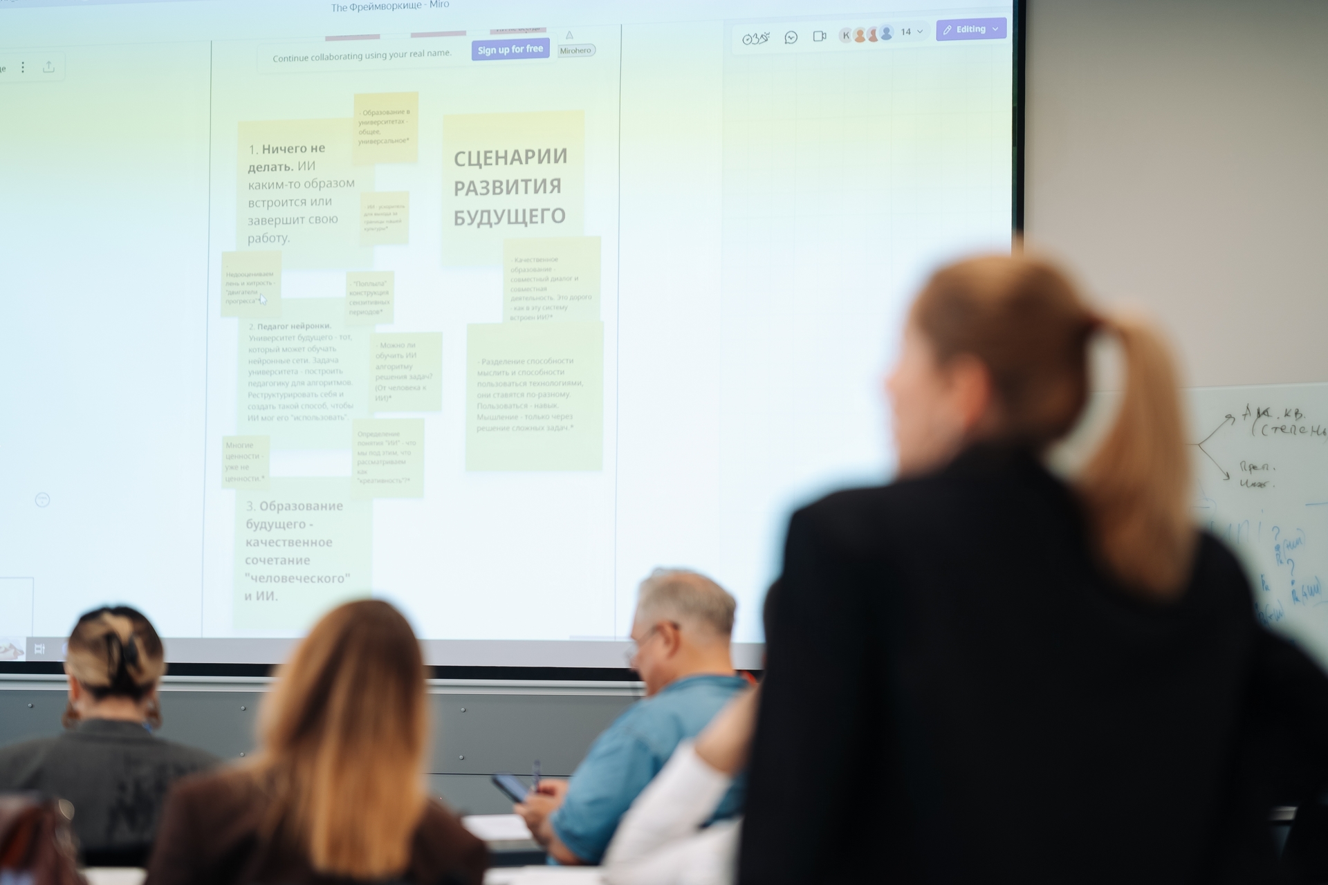 После этого началась командная работа по тематическим трекам. Так, в концептуальном треке шла разработка образовательных моделей с применением технологий ИИ для разных типов университетов. Команда управленческого трека занялась проектированием изменений систем вузовского менеджмента. Другие группы создали проекты правовых поправок, которые нужны, чтобы ИИ-инструменты можно было внедрить в систему образования.