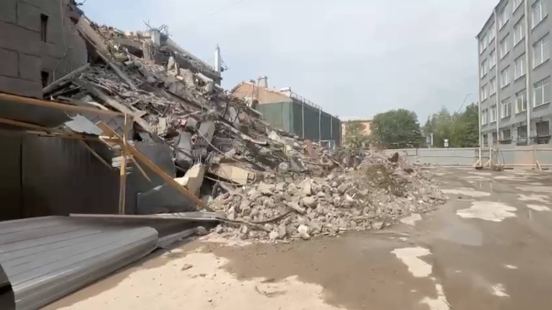 Последствия разрушения здания бывшего завода на Васильевском острове. Видео © t.me / procspb