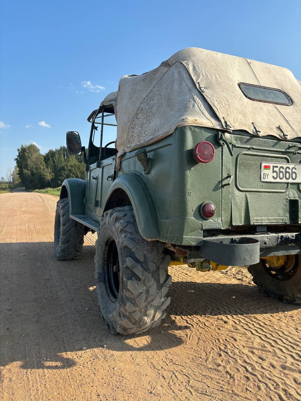 Для сравнения — экземпляр 1962 года выпуска, также с открытым кузовом, но 4-дверным, и с рядным расположением сидений. Продавец утверждает, что автомобиль на ходу, это призваны подтверждать и фотографии. На них же можно увидеть и неоригинальные колеса с внедорожными шинами.