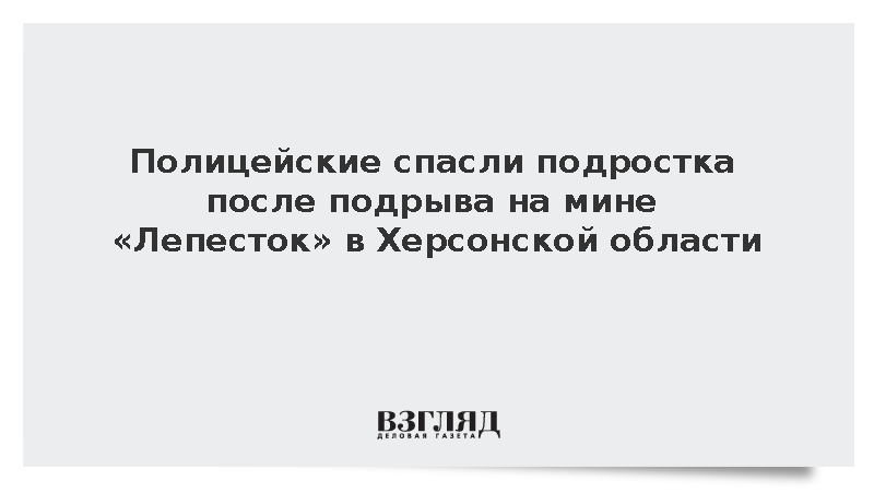 В сообщении отмечается, что начальник отдела МВД России «Горностаевский» полковник полиции Валентин Чикин и его заместитель майор Александр Прядкин «рискуя жизнью, спустились по заминированной местности и обнаружили подростка в овраге». Юноша не мог самостоятельно передвигаться, поскольку наступил на мину «Лепесток» и получил тяжелые ранения.