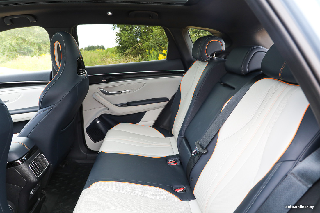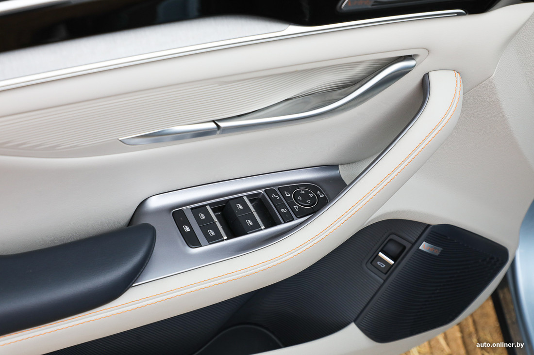 С оснащением тоже полный порядок, хотя тех, кто имел дело с современными китайскими автомобилями, уже ничем не удивишь. Бесключевой доступ, панорамная крыша, зарядная площадка для двух смартфонов — все это сейчас можно встретить и в машинах классом-другим пониже, что уж говорить про довольно крупный и не такой уж дешевый кроссовер?