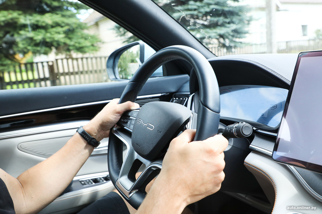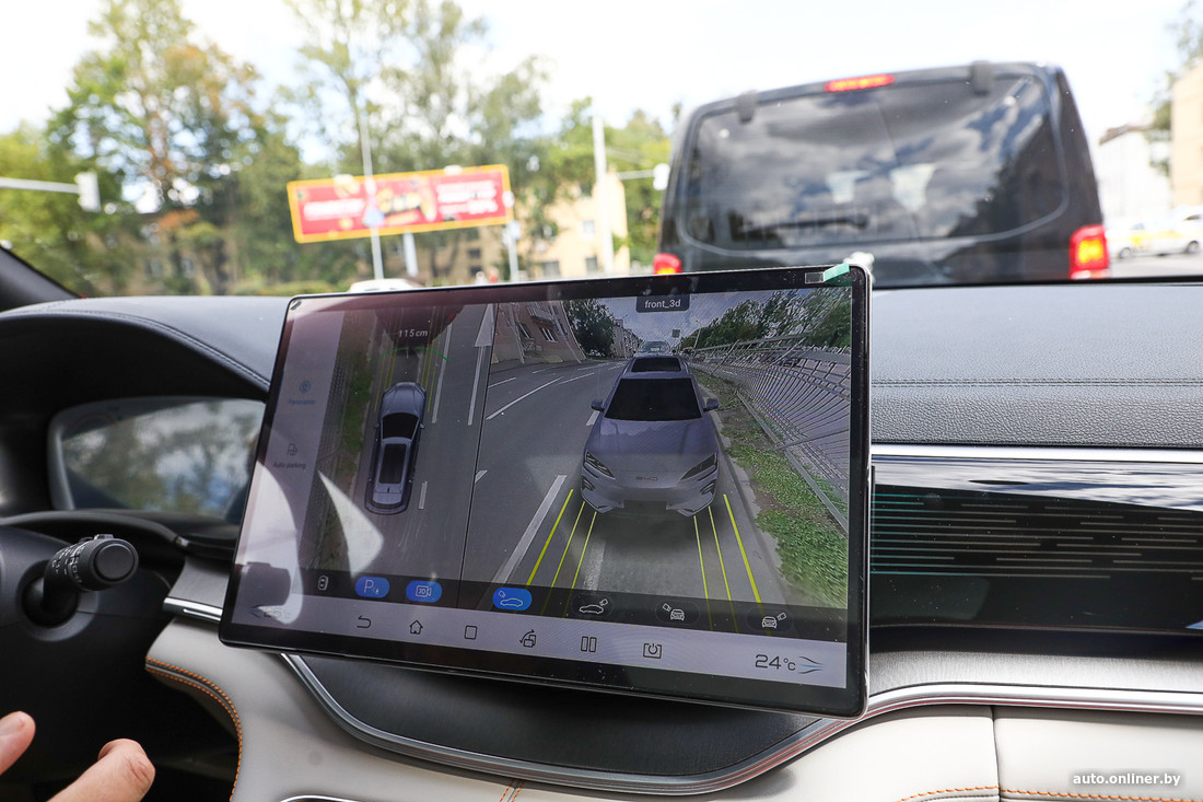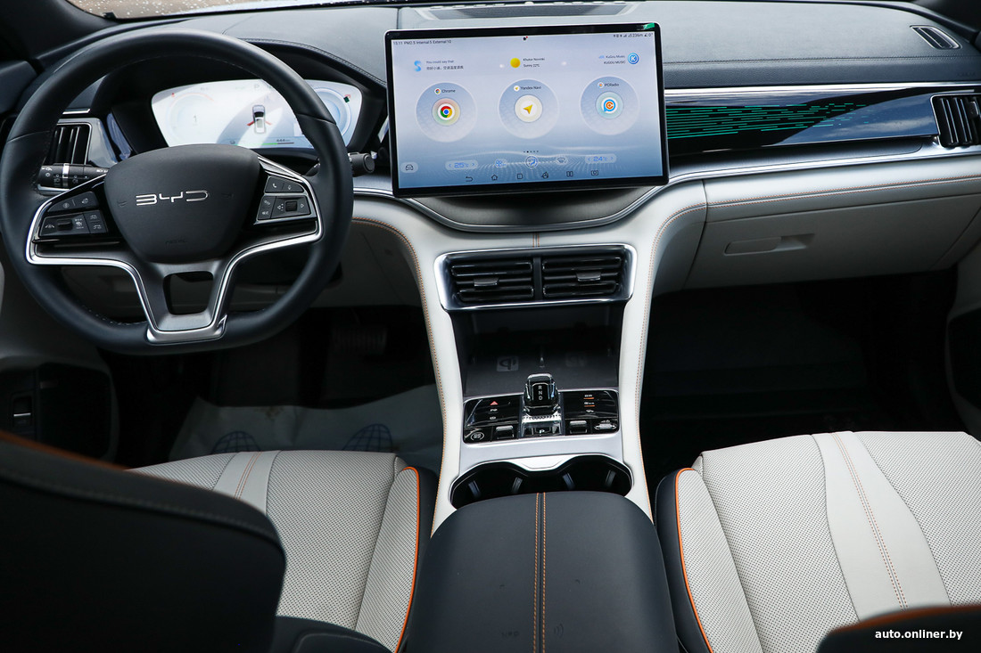 В топовой версии Flagship Plus кроссовер оснащен 15,6-дюймовым экраном мультимедийной системы — разумеется, поворотным, как и у остальных моделей BYD. Особого смысла в этом нет, поскольку в портретной ориентации экран слишком уж высоко торчит над панелью и частично перекрывает обзор, но куда же в современном автомобиля без вау-эффекта?