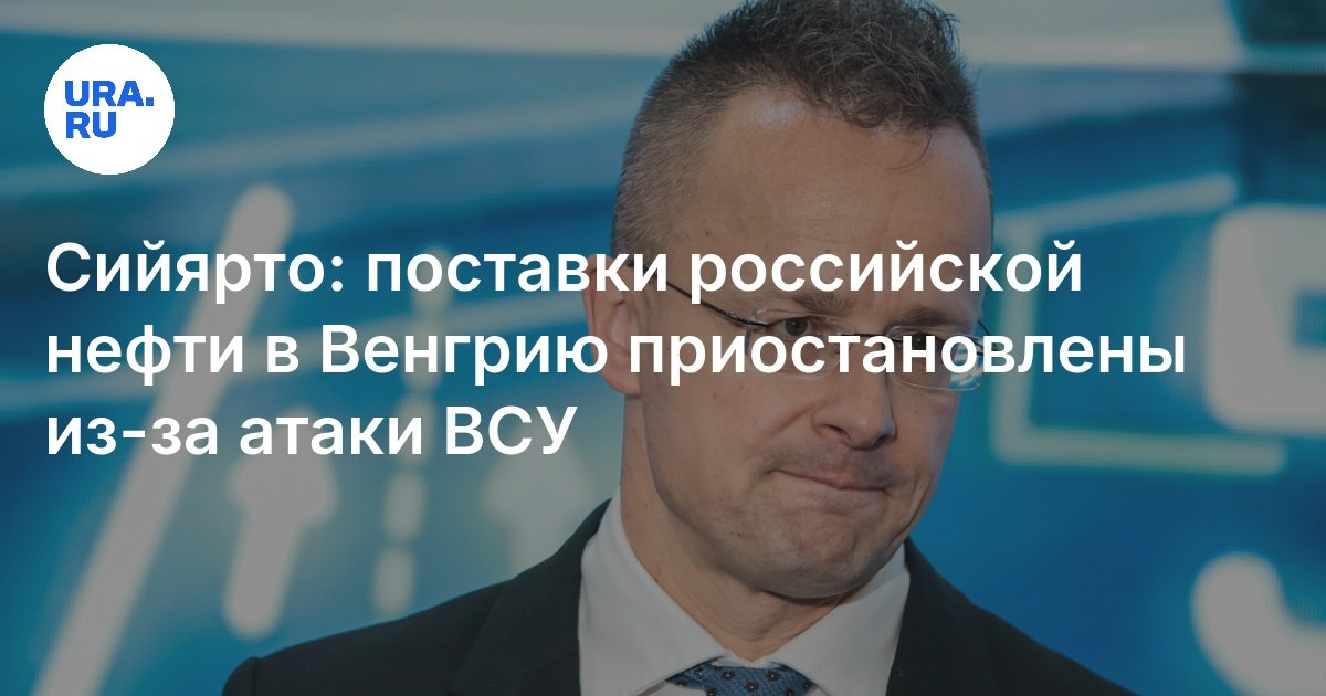 Министр иностранных дел Венгрии Петер Сийярто сообщил о временной приостановке поставок нефти из России в Венгрию через нефтепровод «Дружба». Причиной стала атака дрона, осуществленная Вооруженными Силами Украины (ВСУ) на измерительную станцию нефтепровода. Об этом министр заявил после телефонного разговора с вице-премьером России Александром Новаком.