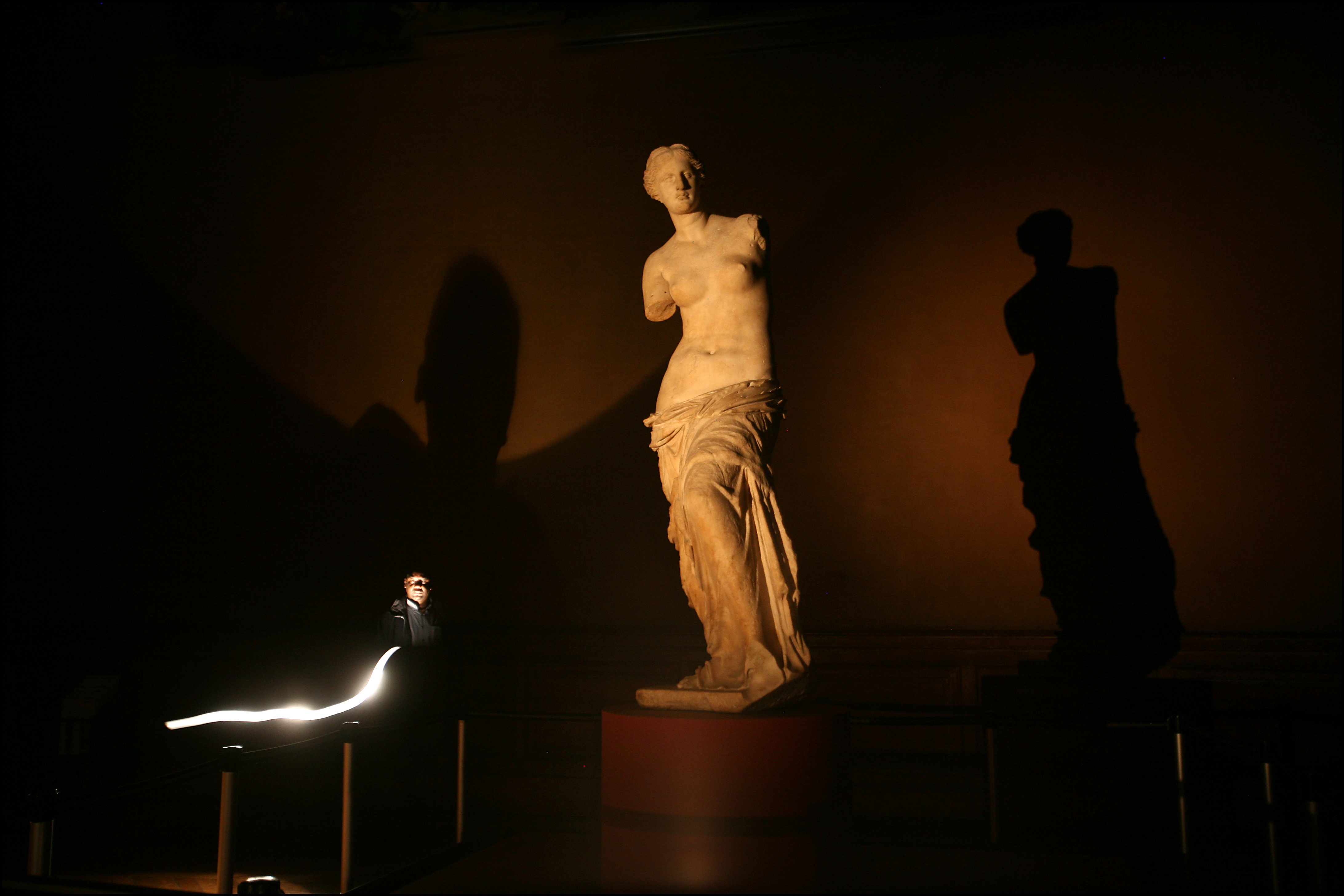 Про то, в каком положении находились те самые утерянные руки, доподлинно неизвестно. Основная версия: в одной руке Венера (в греческой традиции — Афродита) держала яблоко — победный трофей суда Париса. Есть также вариант со щитом Марса — якобы богиня могла смотреться в его полированную поверхность, любуясь отражением. Некоторые искусствоведы относят Милосскую к типу «Венера стыдливая» — изображение богини, прикрывающей одной рукой грудь, а другой — пах. Так или иначе, руки (или, по крайней мере, левая) крепились к торсу на штифтах, именно поэтому Венера так легко их лишилась. А еще, как мы помним, статуя собиралась из отдельных верхней и нижней частей — изначально они тоже были скреплены, но штифты проржавели. Скорее всего, причиной тому был сорт камня: изготовили Венеру не из широко распространенного в античной Греции паросского мрамора, а из более редкой и ценной породы — кораллового мрамора. К сожалению, в природе он не образует больших монолитов, редко куски превышают метр в длину, поэтому на Венеру высотой чуть более двух метров ушло как раз два блока.