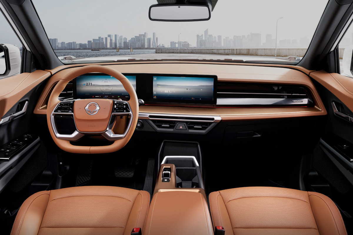 Переднюю часть пикапа оформили в стиле родственного кроссовера – Musso EV досталась аналогичная оптика. Но задние фонари – оригинальные. Для пикапа также предусмотрена заводская остекленная надстройка. Внутри KGM Musso EV, вероятно, тоже повторил исходный KGM Torres EVX, то есть в салоне установлено табло, а между передними креслами есть «парящая» консоль.