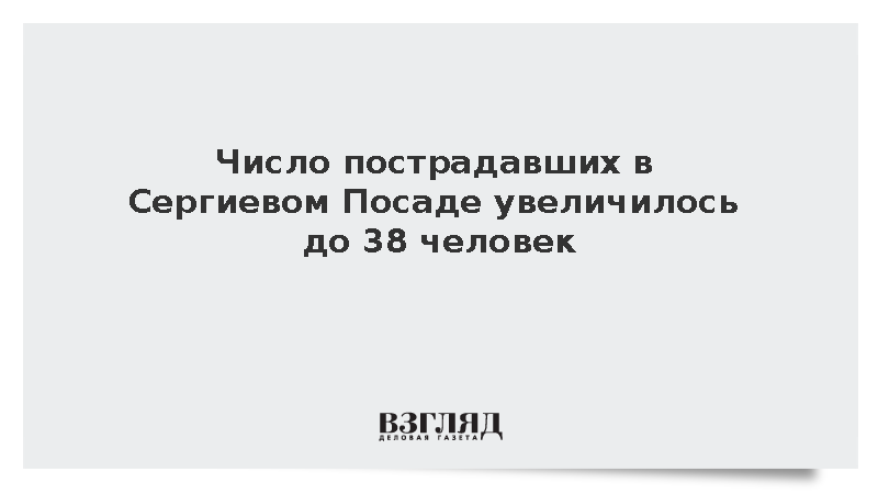 Количество пострадавших при взрыве в Сергиевом Посаде выросло до 38 человек, сообщили в администрации Сергиево-Посадского городского округа Подмосковья.