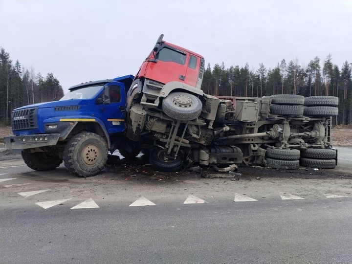 Как сообщили в Госавтоинспекции Карелии, 18 апреля в 16:45 на трассе вблизи деревни Уя в Прионежском районе столкнулись два самосвала.