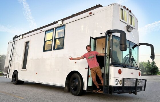 Счастливый владелец в преображенном автобусе. | Фото: homehacks.co.