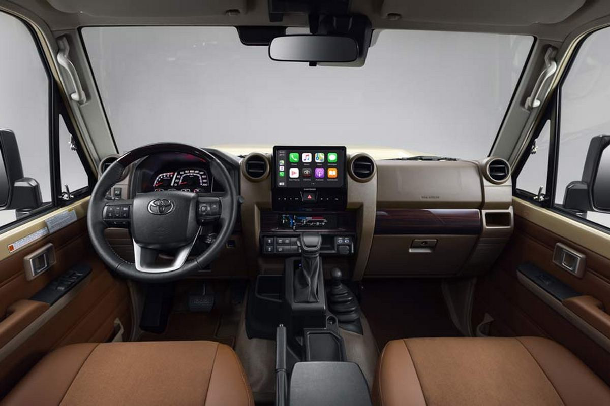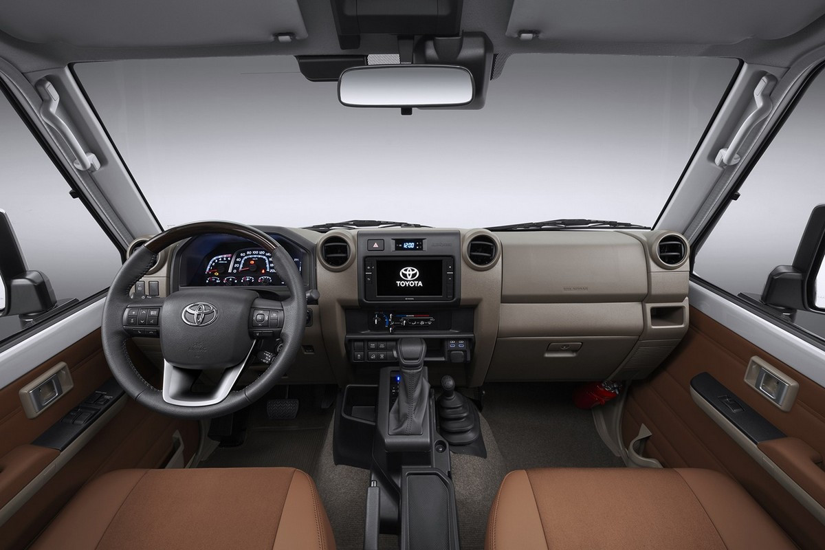 Внутри Land Cruiser 70 3D повторил растянутый вездеход. Для короткой версии предусмотрена мультимедийная система с экраном диагональю 6,7 или 9 дюймов, в последнем случае планшет слегка возвышается над передней панелью. В списке оборудования еще значатся кондиционер и круиз-контроль.