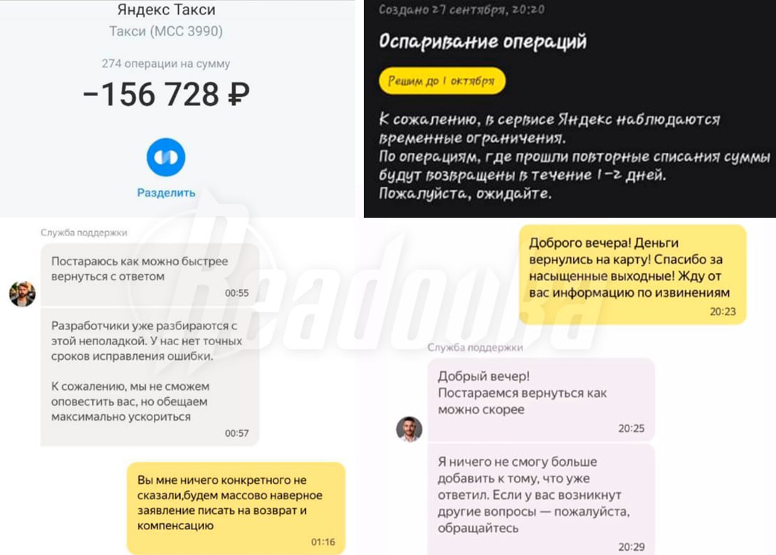 Поездка на «Яндекс.Такси» встала жителю Липецка в ₽59 250 тыс вместо ₽250 — деньги с его дебетовой карты в банке списались 237 раз подряд. Как рассказал Readovka сам пострадавший, то, что со счета пропала крупная сумма, он заметил лишь через несколько дней, когда не смог оплатить товар в магазине из-за нехватки средств. Как выяснилось, Руслан (имя изменено) не единственный пострадавший — за последние дни в такую ситуацию попали многие россияне. Светлана (имя изменено) аналогичным образом лишилась ₽157 тыс. Счета клиентов ушли в огромный минус, после поездок на «Яндексе» люди боятся пополнять свои карты.