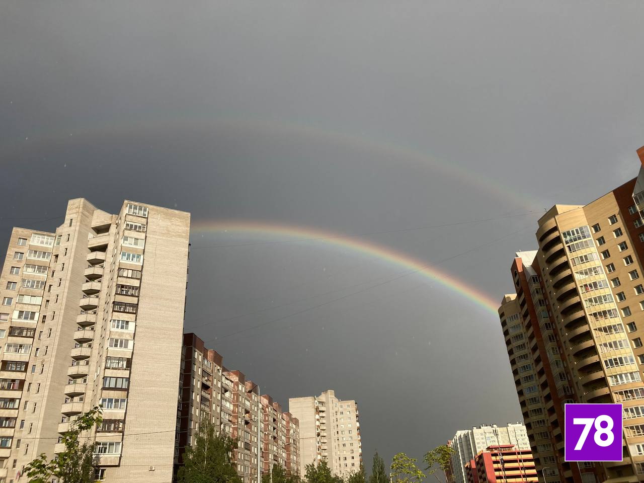 После обильных осадков над городом снова засияло солнце. Радуга не заставила себя ждать — и не одна, а сразу две!