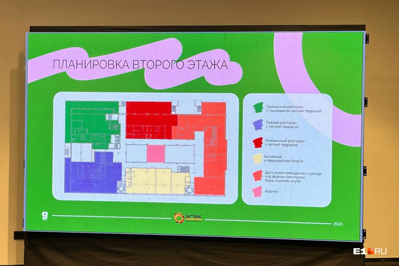 Фуд-молл хотят сделать современным. Заказывать еду можно будет не отдельно в каждом ресторане, а оформить один единый заказ. Также планируют запустить доставку по Екатеринбургу и взять на работу тех, кто будет приносить еду к столу. Фишкой проекта станут террасы. Они займут треть от общей посадки гостей (около 2000 квадратных метров).