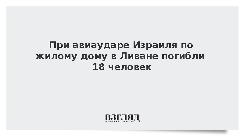В результате авиаудара израильских ВВС по жилому дому в населенном пункте Эйто, на севере Ливана, погибли 18 человек, включая беженцев, следует из сводки Ливанского общества Красного Креста.