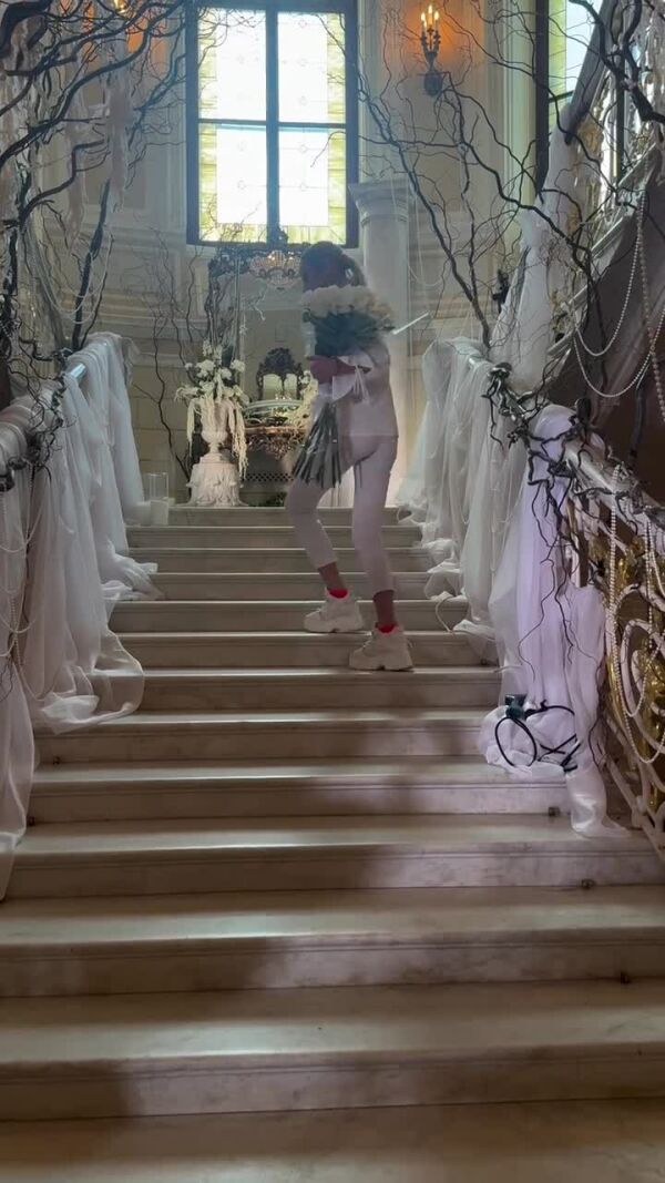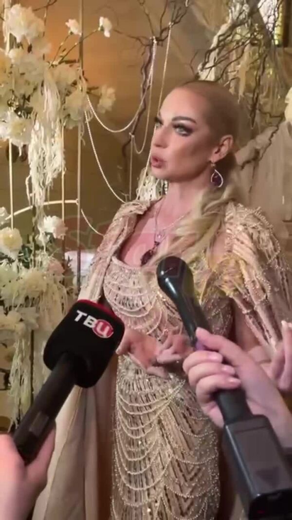 Торжество только началось, первое видео опубликовала сама балерина. В кадре она поднимается по шикарном украшенной белоснежной лестнице внутри особняка. «Очень волнительный день сегодня. Живые цветы, жемчуг. Я прямо в каком-то замке нахожусь», — описала украшения Волочкова. Затем балерина переоделась в праздничный наряд золотого цвета и спустилась пообщаться с журналистами. «Я перед вами открыта. Вы знаете, что представители всех достойнейших СМИ всегда могут взять у меня интервью. Я вам и тортик приготовила», — радушно обратилась звезда к прессе.