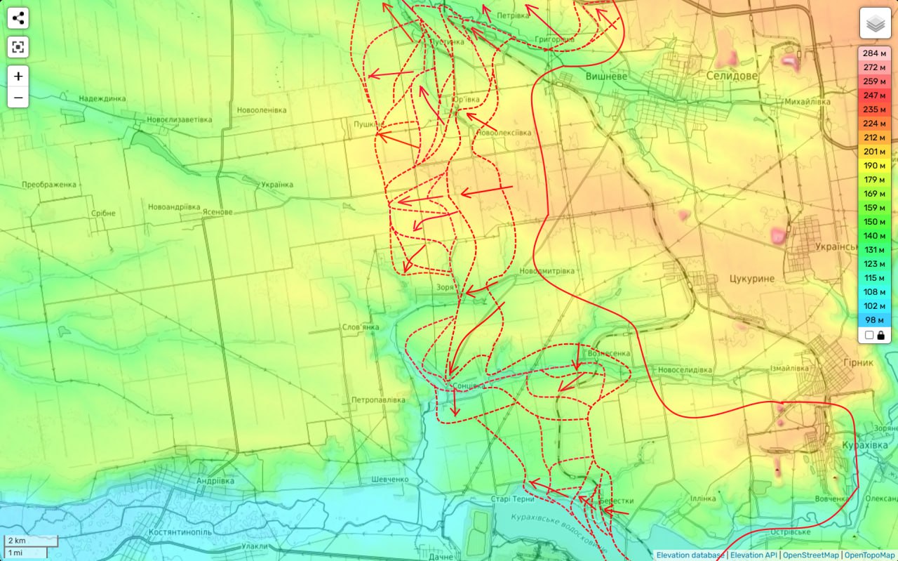 Третья — Пушкино. Бои уже идут фактически на окраинах села. Цель — рокадная трасса от Покровска на Курахово.