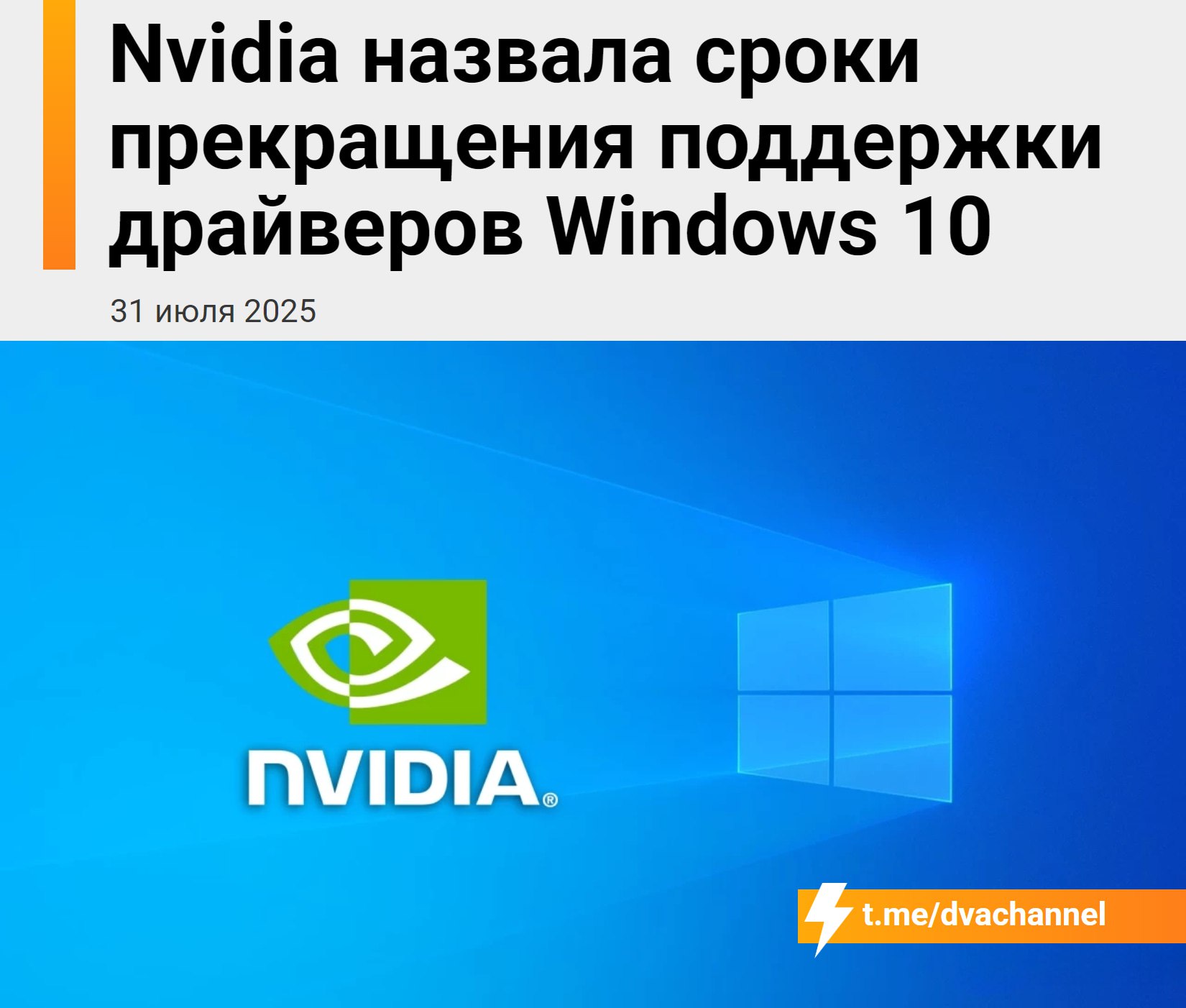⚡️С октября 2026 года Nvidia больше не будет выпускать драйверы для Windows 10 — это произойдёт через год после окончания официальной поддержки системыТакже в октябре