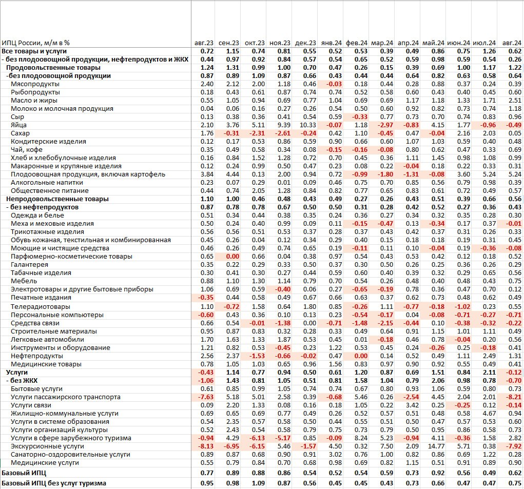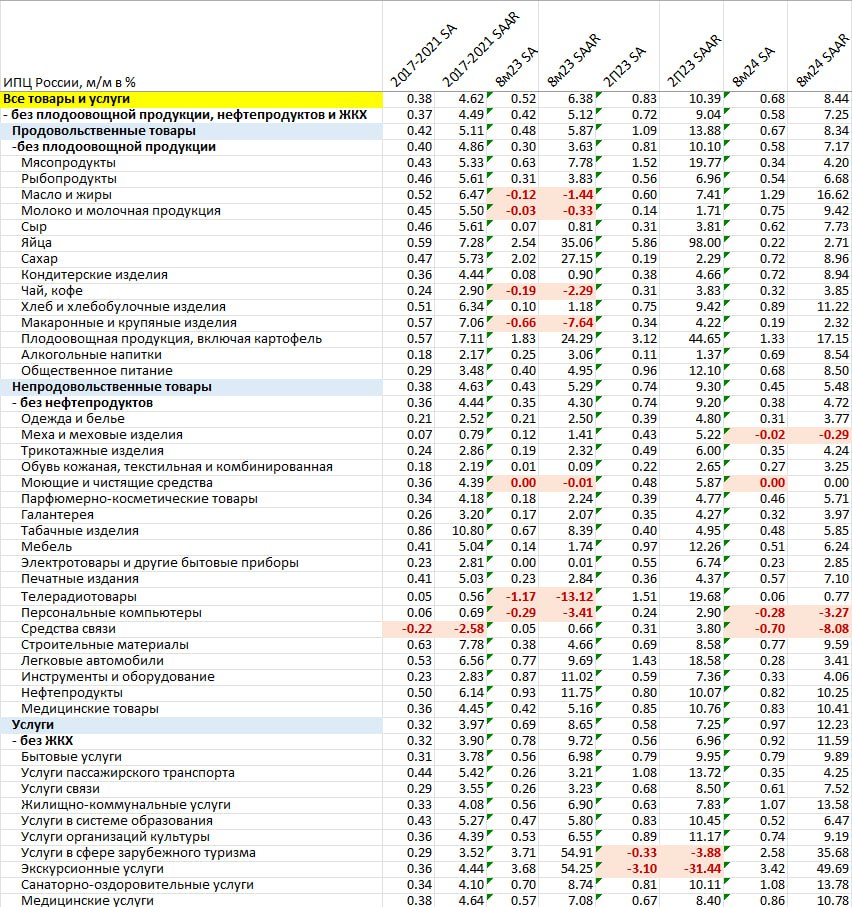 За 8м24 услуги росли в темпах 0.97% в месяц vs 0.69% за 8м23 и нормы всего 0.32%, т.е отклонение от нормы в ТРИ раза!