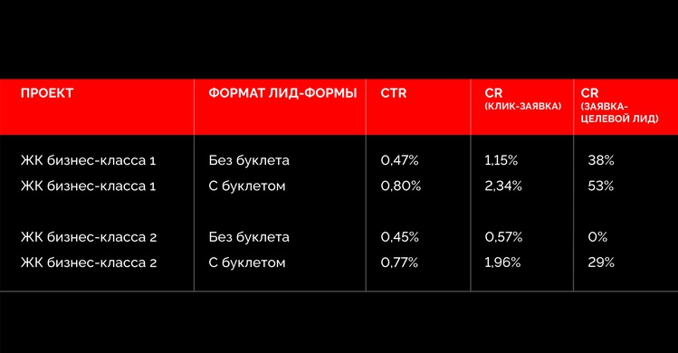 Результаты в виде таблице: «дожимные» лид-формы работают лучше, чем традиционные