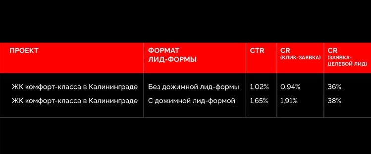 Этот формат мы использовали для разгона лидогенерации в продвижении жилого комплекса комфорт-класса в Калининграде. Особенностью проекта был геотаргетинг по двум направлениям: Россия и соседние страны Европы.