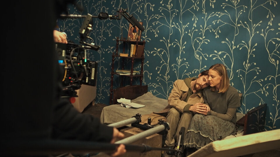 Добиться атмосферного изображения помогали в том числе оригинальные столетние объективы, собранные вручную, а не на машинном производстве. В США на них снимали «Во все тяжкие», а в России их использовали только на съемках «Преступления и наказания». Подробнее о них мы рассказывали в нашем графическом репортаже со съемок.