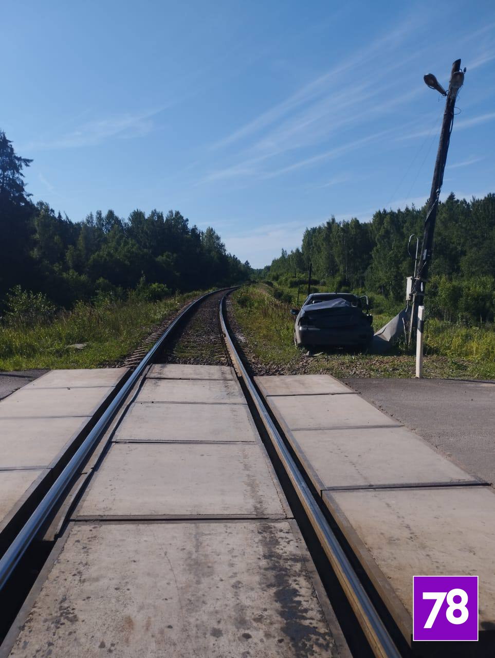 Поезд врезался в легковушку на железнодорожном переезде в Ленобласти