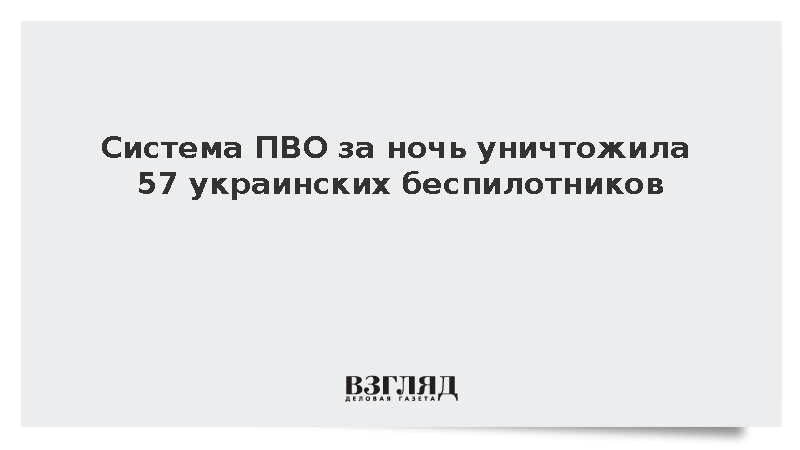 В Telegram-канале ведомства указано, что силы ПВО за прошедшую ночь успешно уничтожили и перехватили 57 украинских беспилотных летательных аппаратов.