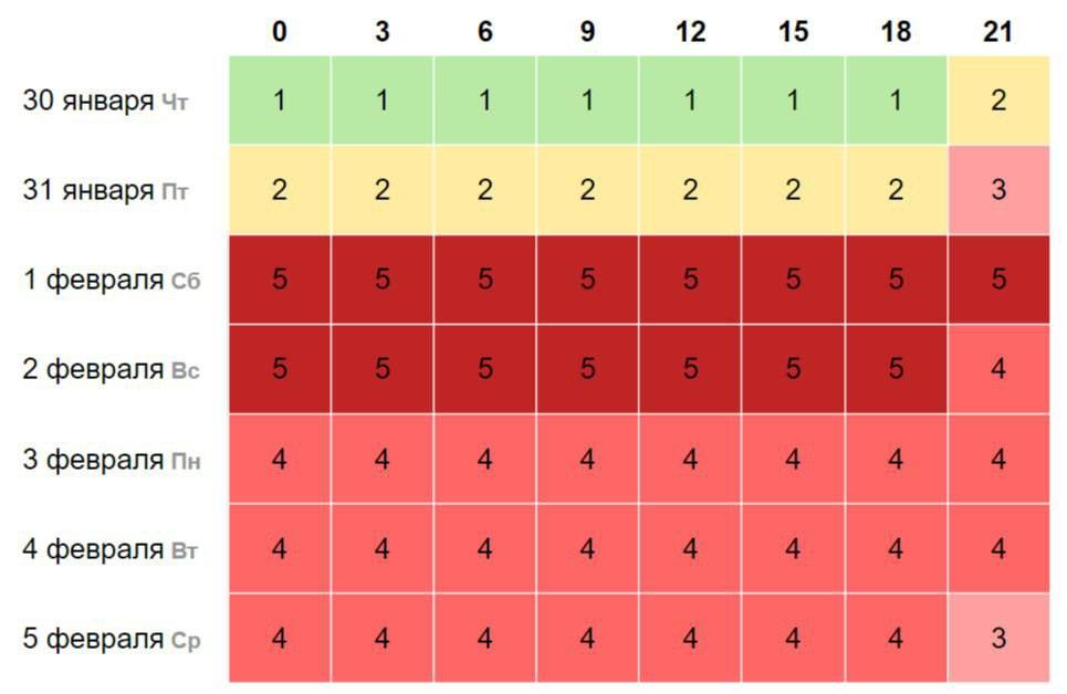 Пик геомагнитной активности придётся на 1-2 февраля, после чего буря немного ослабнет и продлится до вечера 5 февраля.