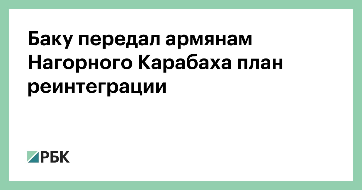 Азербайджан на переговорах с представителями армян Нагорного Карабаха представил план реинтеграции жителей региона, передает агентство Trend со ссылкой на заявление администрации президента Ильхама Алиева.