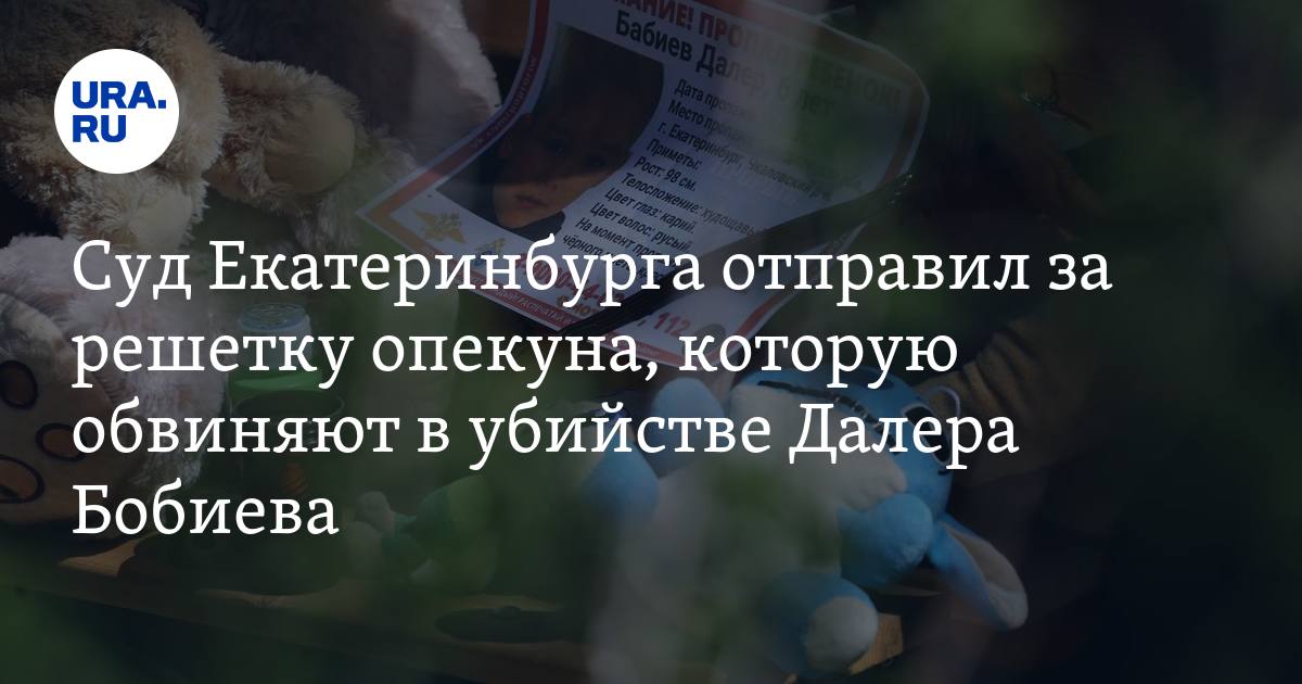 Суд в Екатеринбурге отправил в СИЗО опекуна Веронику Наумову, которая воспитывала погибшего шестилетнего Далера Бобиева. Ее задержали в ночь на 29 июня. Об этом сообщил корреспондент URA.RU с места событий.
