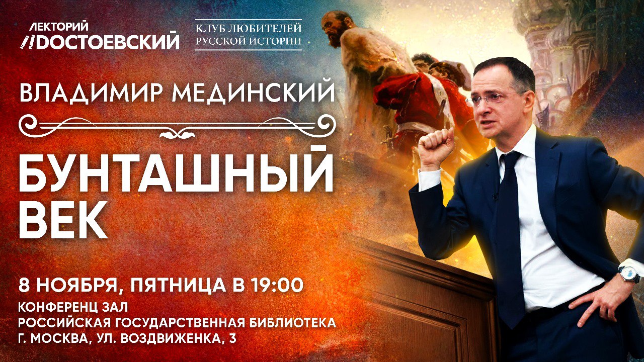 Дорогие друзья! Мы рады пригласить вас на новую публичную лекцию Владимира Мединского!