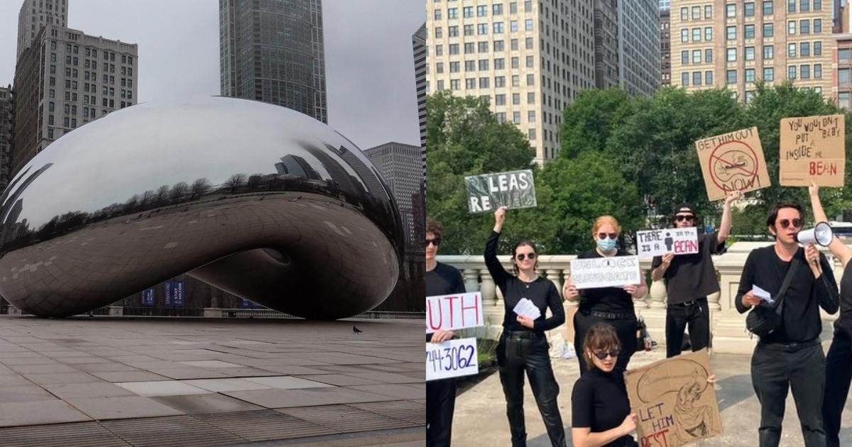 Un collectif nommé Man in Bean a récemment organisé des manifestations pour «libérer» un homme qui vivrait à l’intérieur de l’œuvre «dans des conditions misérables».