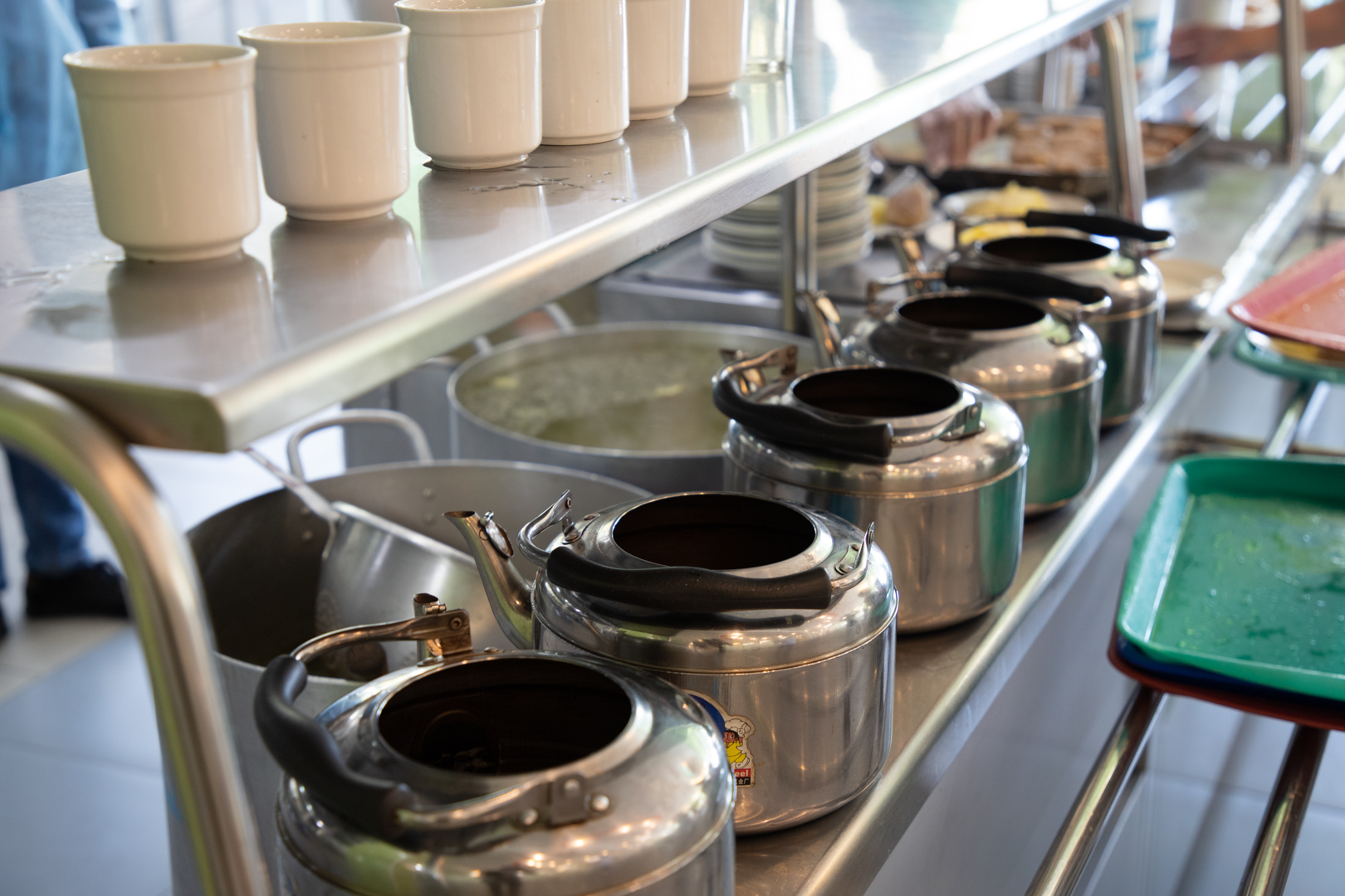 Проверка показала, что здесь использовали посуду со сколами и не из нержавеющей стали, разделочные доски хранили навалом, а личные вещи сотрудников располагались вместе со спецодеждой.