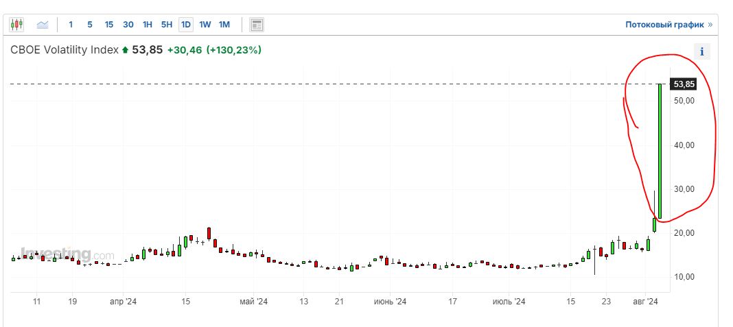 Мощнейший шортсквиз сегодня по индексу волатильности в США. VIX растет за день сразу на 130%.